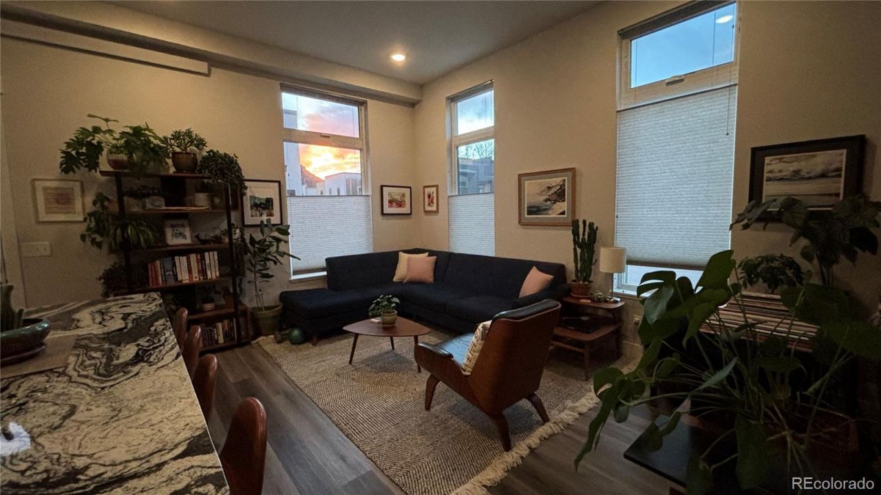 This light-filled, modern studio condo stands out with its coveted corner location, zero-step ground-level entry, and a private patio that seamlessly extends your living space. Enjoy the convenience of a single-car garage with a storage locker plus an additional dedicated off-street parking space. Inside, soaring 11-foot ceilings and expansive floor-to-ceiling windows create a bright and open atmosphere. The living area blends into the open kitchen providing inviting space for company. Lighting can be controlled to perfection with overhead LEDs on dimmer switches. Thoughtful design provides a dedicated bedroom area with closet, overhead storage, and in-unit laundry (stackable LG washer/dryer included). The bathroom has a walk-in shower with a beautifully tiled surround, designer wallpaper, and premium Benjamin Moore paint. The kitchen features modern slab-front cabinetry with white uppers, maple lowers, and quartz countertops. A striking granite topped island doubles as both dining space and extra storage. The exterior features industrial-modern architecture with a low-maintenance stucco, stone, and custom structural steel. This unit is steps from Silver Whisker Bakery, Liberty Hall Cocktail Bar, Mojos Eatery, and Kims Gym with more amenities to come! Located in the heart of Two Rivers Commons, youre just steps from the South Arkansas River and within walking distance to approximately 7 acres of riverside open space. Enjoy the benefits of this walkable live/work neighborhood complete with off-street parking, high-speed EV chargers, outdoor community spaces, mature trees, and mountain views. Historic Downtown Salida and Methodist Mountain trails are just one mile away. Flexible use options make this property an exceptional opportunity: live here full-time, part-time, and/or generate income when youre away. Short-term rentals are allowed (licensing required). With C-2 Central Business District zoning, this unit includes entitlements for a wide range of land uses.