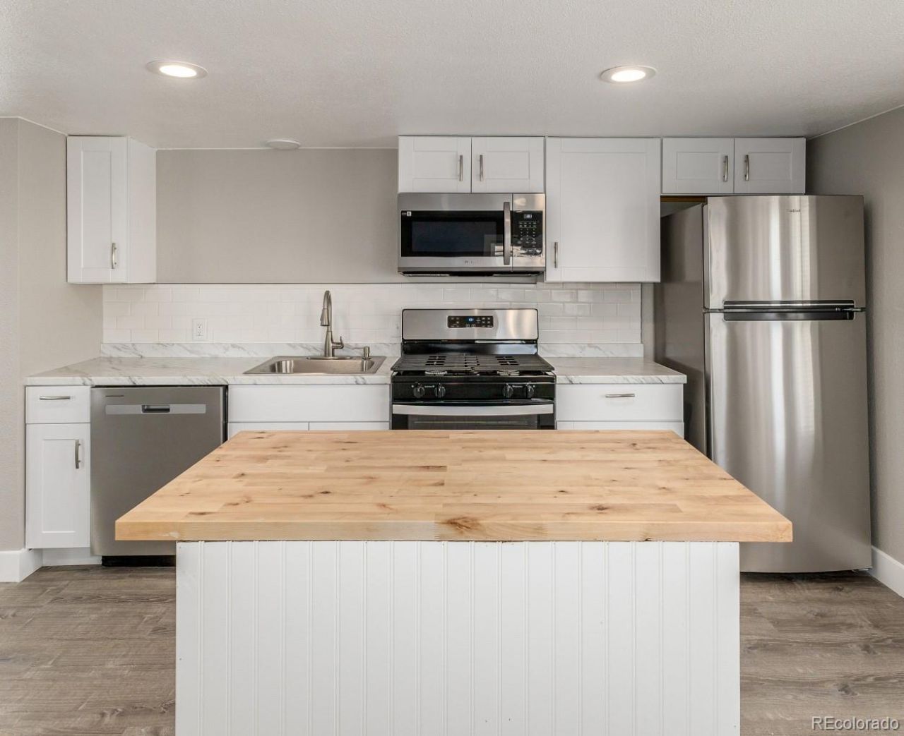Welcome to this beautifully remodeled home located in Mountainview community. This inviting home offers a bright open floor plan, modern finishes, and comfortable living spaces throughout. Inside you will find a spacious living area filled with natural light, recessed lighting, fresh neutral tones, and durable luxury vinyl flooring that flows seamlessly through the main living areas. The open layout creates a welcoming space ideal for both everyday living and entertaining. The fully remodeled kitchen features white cabinetry, stainless steel appliances, subway tile backsplash, generous counter space, and a center island with butcher block top with eat in space?perfect for meal prep, casual dining, or gathering with guests. The kitchen opens directly to the main living area creating excellent flow throughout the home and room for a dining table. The bedrooms are comfortably sized with updated finishes, while the bathroom has been remodeled with modern vanities, stylish black fixtures, and beautiful tilework including a spa-inspired rainfall shower and waterfall tub faucet. The exterior has new paint, new entry steps, and space for outdoor seating or relaxing. Love your outdoor living space with mature trees, a fire pit and the home backs to the open space and trails, perfect for enjoying the Colorado sunshine. Divinely located in Loveland with easy access to local parks, shopping, dining, and nearby outdoor recreation Mariana Butte Golf Course, Boedecker Lake and Devils Backbone Open Space.