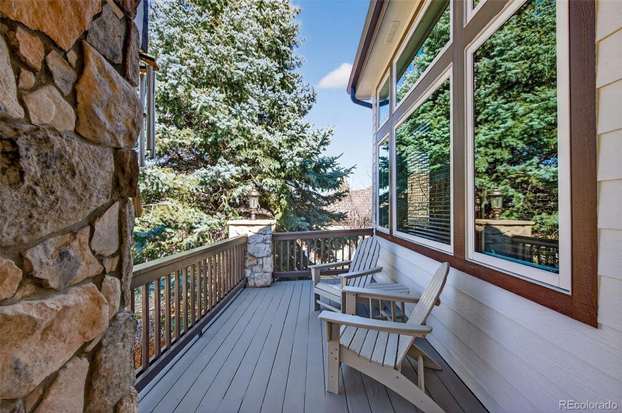 Perfectly maintained home with fabulous views of the Hogback! This spacious residence features 6 bedrooms, 5 bathrooms, and an exceptional layout designed for comfortable living and effortless entertaining.A grand entry welcomes you into the home. The main level features a living room, a formal dining room with a butlers pantry, a private study, a bedroom, a large laundry room, and a ¾ bath. The spacious kitchen flows seamlessly into the light-filled family room, highlighted by a stunning stone gas fireplace and abundant natural light.The upper level offers a luxurious primary suite with a separate sitting area, a huge walk-in closet, and a beautifully updated spa-like bathroom with a soaking tub. Three additional bedrooms, two bathrooms, and a convenient laundry chute complete the upper level.The expansive walk-out basement offers incredible versatility with a game room, fitness room, and entertainment area with a built-in system. A large wet bar with a beverage refrigerator and dishwasher makes entertaining effortless. The lower level also includes an additional bedroom with a five-piece bath, plus a separate basement heater for extra comfort during colder months.Enjoy the stunning outdoor living space featuring a stamped concrete patio, a newer oversized Trex deck with electric awnings, and a private fenced yard?perfect for relaxing or entertaining while taking in the beautiful surroundings.Additional highlights include a three-car garage, front deck, tile roof, updated windows, and newer two-zone HVAC, a brick paver driveway, and a smart sprinkler system, plenty of storage.Residents enjoy Ken Caryls incredible amenities, including three pools, miles of interior and exterior trails, tennis and pickleball courts, numerous parks, a fitness center, day care, and a premier equestrian center.New Sonos sound system.