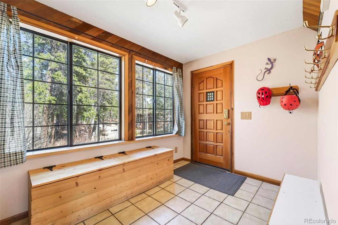 Ready to trade city noise for fresh air and open skies? This mountain home just outside Boulder offers a lifestyle centered around the outdoors, with mature aspens, evergreens, and sweeping views of the Continental Divide. The main level features a tiled mudroom for gear, an open kitchen, dining, and living area with large windows, warm wood finishes, hardwood floors, and radiant heat. A full bath adds convenience. Upstairs, two bedrooms share an updated bath with a soaking tub and mosaic tile shower, with one bedroom opening to a private balcony. The top level offers a bright bonus space with vaulted ceilings and its own balcony, ideal for an office, studio, or extra sleeping area. Outdoor living includes stone patios perfect for relaxing or gathering, plus a detached workshop with electricity for projects or storage. With a newer roof, paved county maintained access, and a low maintenance recycled asphalt driveway, this home works well as a full time residence or a getaway from Denver where everyday life feels a little more connected to nature.