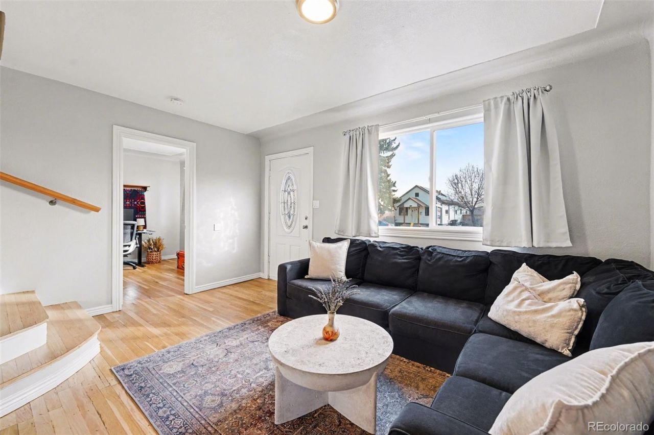 Located in Denvers vibrant Valverde neighborhood, this bright and inviting two-story home offers space, flexibility, and an unbeatable location. The main level features a spacious living room and convenient bedroom, stepping down into an updated kitchen with newer appliances and abundant natural light. Upstairs, youll find two additional bedrooms and a full bath, providing comfortable separation of living space. Major updates include a 5-year-old roof, furnace and A/C for added peace of mind. Outside, enjoy two covered patios perfect for relaxing or entertaining, along with a rare 1.5-car garage and a driveway with room for 4 vehicles - offering exceptional off-street parking. Just blocks from Huston Lake Park ? featuring a scenic lake, trails, playgrounds, and open green space ? and just two blocks from West-Bar-Val-Wood Park, with additional recreation fields and community amenities. Quick access to Alameda, Santa Fe, 6th Avenue, downtown, and the South Platte trail system makes commuting a breeze. Comfort, convenience, and location ? all in one! Showings start Friday, 2/20!