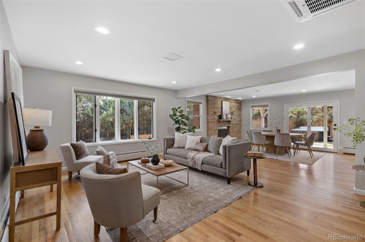 Beautifully updated & meticulously maintained, this classic Southern Hills ranch is just a stones throw from McWilliams (Dinosaur) Park and feeds into coveted Slavens K-8. A thoughtful recent refresh brings renewed energy to an already exceptional home. Fresh paint, updated fixtures, new hardware throughout, and a striking staircase to the basement, enhanced by a wooden railing with wrought iron balusters, makes an immediate impression. Rich hardwood floors, a statement flagstone fireplace, a charming bay window, and curated lighting establish a warm, elevated feel on the main level. Comfort meets efficiency with an integrated flush-mounted mini-split system on the main floor, delivering modern climate control without compromising aesthetics. The gourmet kitchen is a true centerpiece showcasing high-end granite countertops, Thermador and SubZero appliances, custom Crystal cabinetry, and an expansive center island; all complemented by an adjacent mudroom/laundry for seamless daily living. Three spacious main-floor bedrooms include a tranquil primary suite with generous closet space and updated spa-like bath that features an oversized walk-in shower. The finished basement expands living/entertaining possibilities with a stylish wet bar, beverage fridge, and media area ? alongside an enormous guest bedroom or bonus room with a private bath & walk-in shower. The utility room & crawl space provide outstanding storage, and the garage offers a newly refinished floor, flexibility for gear, toys or an additional workspace. A quiet oversized lot, extended covered patio, and mature landscaping front and back create an inviting setting for relaxing, playing, or hosting. New soffits, fascia, and recently installed gutters w/leaf guards add function and peace of mind. An unmatched location - close to Observatory Park, Slavens Elementary, and minutes from vibrant dining and shopping in Cherry Creek, DTC, DU, Swedish Medical Center & University Hills. This is your new home!