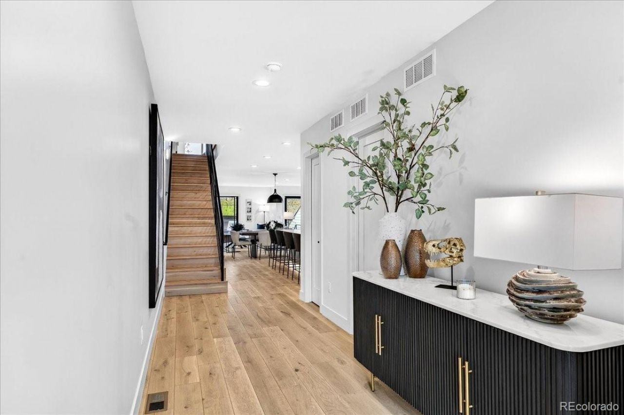 Modern luxury meets effortless living in this stunning 4-bedroom, 4-bath townhouse in Englewood. Thoughtfully designed with both style and function in mind, this home features an open-concept main level with a dedicated office space and a light-filled living area perfect for working from home or entertaining.The chefs kitchen is a standout, complete with sleek quartz countertops, a full-sized refrigerator and freezer, premium Thermador appliances, and a spacious walk-in pantry for ultimate convenience. Walk-in closets throughout the home provide abundant storage, while the oversized 2-car garage offers plenty of room for vehicles and gear.Step outside to a low-maintenance, pet-friendly turf backyard, ideal for relaxing or letting your furry friends roam. Take in sweeping mountain views from the private rooftop deck, the perfect setting for sunset gatherings or quiet mornings.With select furniture negotiable, this home offers a rare opportunity to move right in and start living. Just two blocks from South Broadway, restaurants, bars, boutiques, and antique shops, this stylish, functional, and perfectly located townhouse is elevated living at its finest.