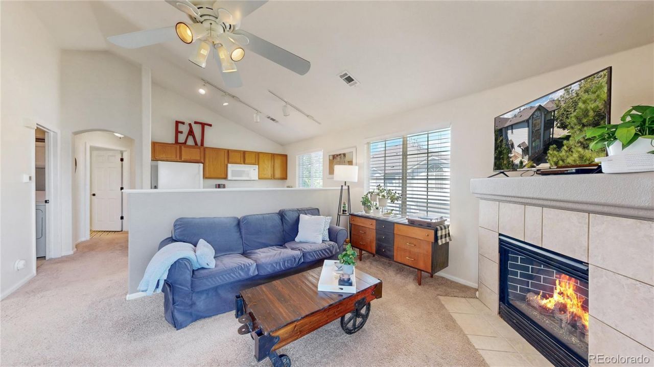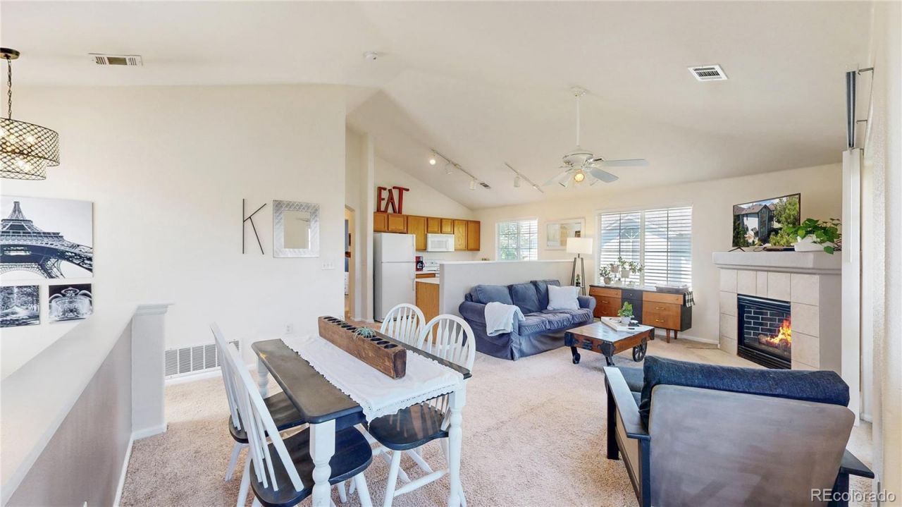 This is THE ONE! Relish in the comfort and low-maintenance living that come together in this stylish condo, featuring an open floorplan with an attached garage, Newer Furnace, Newer Air-Conditioning System and Newer Hot Water Heater! The main living area is open and inviting, with large windows that bring in natural light and gorgeous vaulted ceilings that highlight the homes spacious layout. A cozy fireplace anchors the living room, making it the perfect place to relax at the end of the day. Sliding glass doors lead to a private balcony, extending the living space outdoors for morning coffee or evening unwinding. The kitchen is thoughtfully designed with plenty of cabinetry, generous counter space, and modern appliances. Its open flow into the dining and living areas makes entertaining seamless. The primary suite serves as a private retreat, featuring a large bedroom, walk-in closet, and more natural light from a phenomenal arched window. The tastefully updated bathroom has plenty of space featuring a generously sized oval soaking tub and linen closet. Additional conveniences include a large laundry room and the attached garage, ensuring both comfort and secure parking. This gated community is well-maintained, with landscaped grounds and shared amenities that enhance the living experience with the Clubhouse and outdoor pool. Location is yet another highlight?just a short distance from Rotella Park, Carpenter Park, and the Thornton Crossroads & 104th Ave light rail station, making commuting into Denver and surrounding areas simple! This home offers move-in-ready convenience and a lifestyle that fits modern Colorado living. Come make this gem yours today!