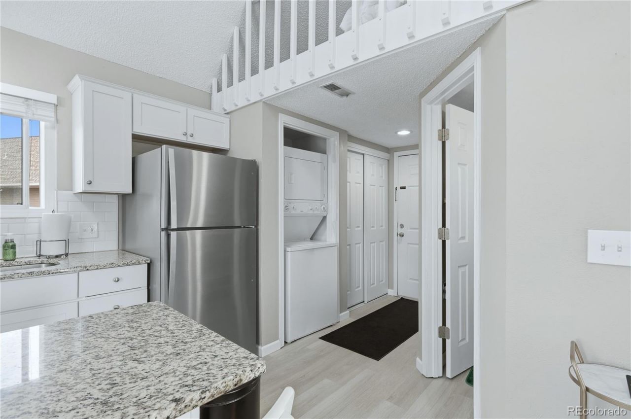 First buyers loss is your gain! Welcome home to the best value in Littleton! This adorable 1-bed/1-bath condo has everything: location, views, parking, comfort, and utility! Nestled in between various gorgeous parks and open spaces, and just a stones throw from Big Dry Creek Trail (and Pirates Cove!), this sharp unit combines tasteful finishes with functionality to live larger than its square footage. The property boasts an open floor plan with updates throughout, from its sleek LVP flooring to the open concept kitchen with granite counters, light-and-bright colors and stainless steel appliances. The loft bedroom allows for a great office or flex space on the main level, in addition to the comfy living room. Spy amazing views from the private balcony as you sip your morning coffee, or fire off your final emails for the day as the sun sets in the distance...Furniture is negotiable! In-unit washer and dryer (included) and a modernized full bath complete this wonderful floor plan. Easy access to Highway 85 and Hamdpen keep this dream accessible and tethered to reality. The location of the unit allows for easy access to the community pool, without having to hear the sounds of the fun from your home. The covered, attached carport is more like a garage! This unit has all the things, and all for under $250K, with HOA costs under $250 per month! Additionally, the HOA is very competent and easy to get a hold of. Schedule your showing now, this one is almost too good to be true! Call Noah with questions: 970.420.9531