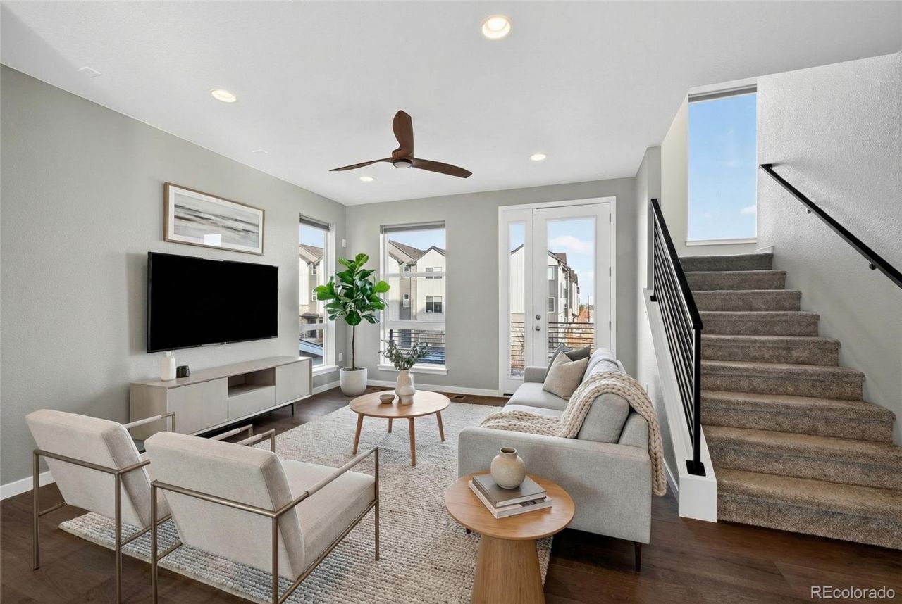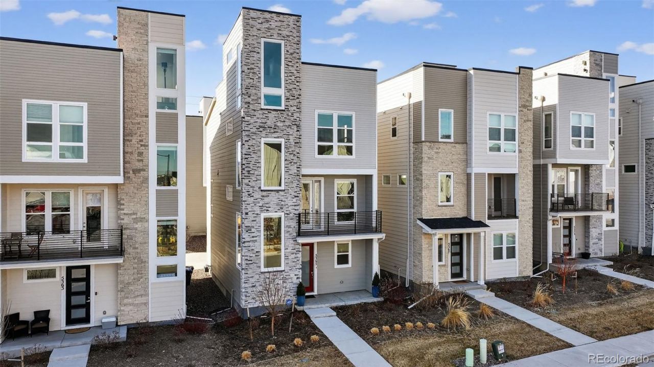 Perched above it all with sweeping views of downtown Denver and the nearby foothills, this 2023-built standalone residence in Haskins Station offers elevated outdoor living and a streamlined, modern lifestyle. At the top, a private rooftop terrace sets the stage for open-air entertaining or quiet evenings with a mountain backdrop and city lights on the horizon.Inside, three levels of well-proportioned space showcase thoughtful design and quality finishes. The main level features an open-concept layout where a spacious family room flows into an oversized kitchen?ideal for gatherings and daily living. The kitchen boasts quartz counters, upgraded appliances, a full tile backsplash, and a large island with ample prep space. A conveniently located powder room serves this main living area, and expansive windows bring in abundant natural light.Upstairs, the primary suite is a standout with a massive walk-in closet and a spa-inspired en suite bath featuring an oversized shower with multiple showerheads, including a rainfall fixture. A second bedroom with its own full bath offers flexibility for guests or workspace needs. Laundry is located on the entry level near the attached two-car garage, making drop-off and organization a breeze. The front yard is landscaped and equipped with a sprinkler system for low-maintenance care.Additional highlights include central air, wood, tile, and carpet flooring, double-pane windows, and a radon mitigation system. With its rooftop mountain views, modern design, and close proximity to light rail, Olde Town Arvada, downtown, and the mountains, this home offers a truly elevated everyday experience. Seller is open to considering buyer assistance/ Seller concession toward closing costs and/or an interest rate buydown, subject to offer terms and seller approval.