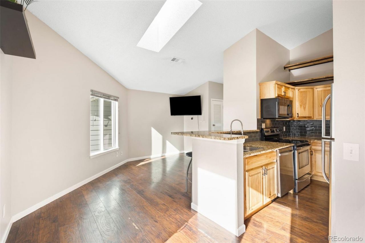 Top-floor living with no neighbors above or beside you?your own quiet corner to recharge. This one-bedroom condo is fully updated and designed for a simple, low-maintenance lifestyle. Natural light pours in with west-facing views and a peek of the mountains right from your living space. The kitchen is sharp and functional with hickory cabinets, granite counters, stainless steel appliances, and a large bar perfect for quick mornings or casual dinners with friends. Smart storage throughout keeps everything in its place without feeling cluttered. The bedroom offers a walk-in closet and a fully renovated ensuite with custom tile and clean, modern finishes. A private patio adds just enough outdoor space to unwind, plus extra storage for your Colorado gear. If youre ready for less upkeep and more living?this is your spot. Lock-and-leave, easy living, and close to everything that makes Colorado fun.