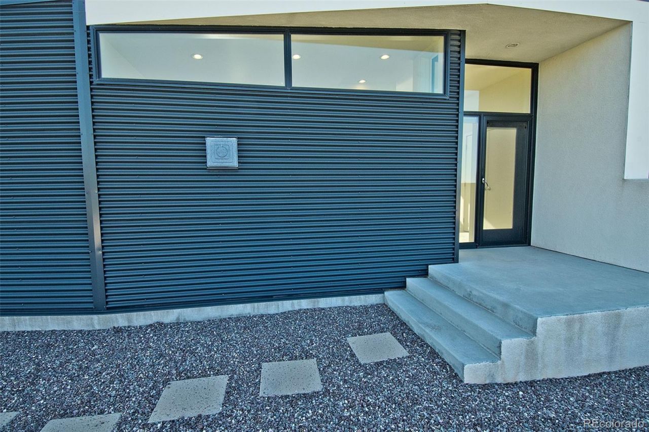 Welcome to the Zen Garden House, a showcase in sleek Japanese aesthetic, by contemporary New York architect David Jay Weiner. Concrete, steel and glass are folded together in perfect harmony, to mimic the delicate folds in classic Japanese Origami, culminating in a work of art that showcases the spectacular beauty of the Sangre de Cristo Mountains. Situated on 20 contiguous acres, with an additional 10 across the street to protect privacy and view. Entering the house through the west into the Great Room, you are greeted with floor to ceiling windows, dominating the east and south faces of the home. The white and steel clad kitchen has ample cabinet space for most home chefs, and the huge island is the ideal counter for playing host, along with the flexible space in the Great Room. Designed to allow natural cooling with constant airflow, large stucco and metal awnings protect the windows from direct weather and cover the 315 sq ft deck. In-floor radiant heat through polished concrete floors and high R-value insulation maintains the warm interior winter temperature, while a fireplace provides additional cozy warmth. To the north of the house, the namesake of the house provides tranquility and a private view of nature in the glass and concrete enclosed Zen garden. Inside, the floor has been inlaid with Japanese Tatami mats, perfect for yoga, sitting, and even sleeping. A full bath adjacent includes beautiful custom teal tiles and handy wall insets, as well as a deep closet for storage. On the south side of the home, the primary bedroom opens up with dramatic views of the mountains and sand dunes, as both of the entire walls on the corner are fully comprised of windows. The primary bathroom features stunning custom tile work and a luxurious soaking tub with an exterior viewing window, and a large walk in closet rounds out the primary suite. Form and function blend in this must see home, visible in the virtual tour.