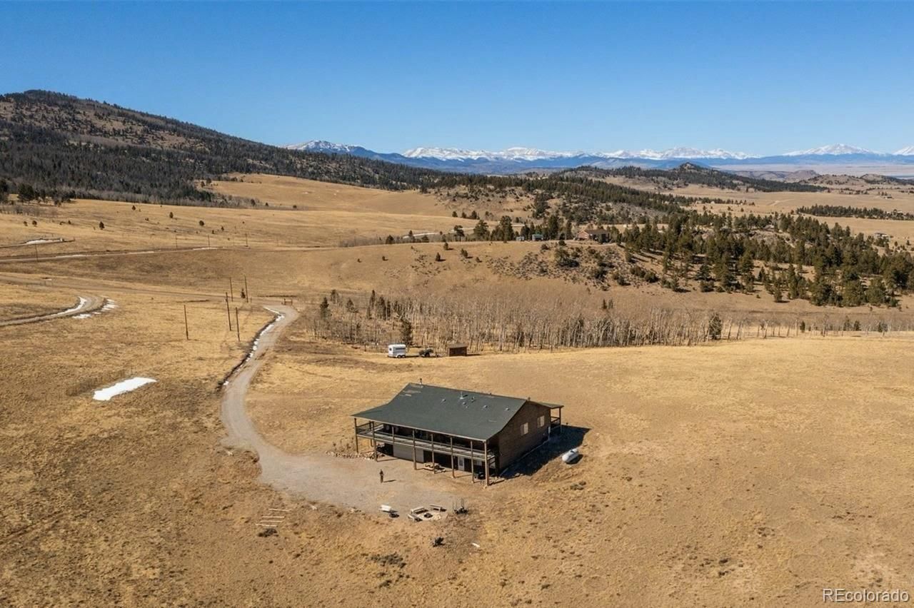 Adjacent to National Forest on 11.50 acres of ultra private and pristine mountain property. This spectacular retreat comes furnished and is ready for you to start enjoying. You will love the many features in this home including log siding, wrap around covered deck, LVP flooring, and walking directly into National Forest! Abundant wildlife is frequently seen moving about on the property. If you are looking for a place to get away from the noise and drink your coffee in a rocking chair in solitude, this home has that special quality you will adore. Three bedrooms, two bathrooms, and the open concept floorplan is great for large groups and entertaining. The cozy woodstove will keep you warm on those chilly Colorado evenings. You can explore your very own aspen grove with and start a hobby in the garage/workshop. Stargazing is wonderful in this spot because of the secluded location. The HOA includes central trash service, dog park, pavilion, and a stocked fishing reservoir for all property owners and guests. You are close to world class fishing, hiking, ATV trails, skiing, and biking. Colorado Springs and Denver are a short drive away. This home is true Colorado paradise you will enjoy for years to come.